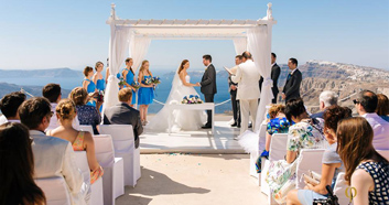 Ceremony: Picture your idyllic wedding in Santorini and enjoy your civil or symbolic ceremony, overlooking the magnificent Caldera cliffs and the sparkling turquoise sea. Say “I Do” with the backdrop of a serene and romantic sunset.